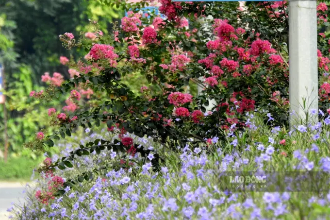 Hàng cây hoa tường vi tại đây là những cây thân bụi cao từ 1 đến 1,5m và đều đang bung nở, xen lẫn tường vi là các dãy hoa ngũ sắc, hoa chiều tím. Ảnh: Tô Công.