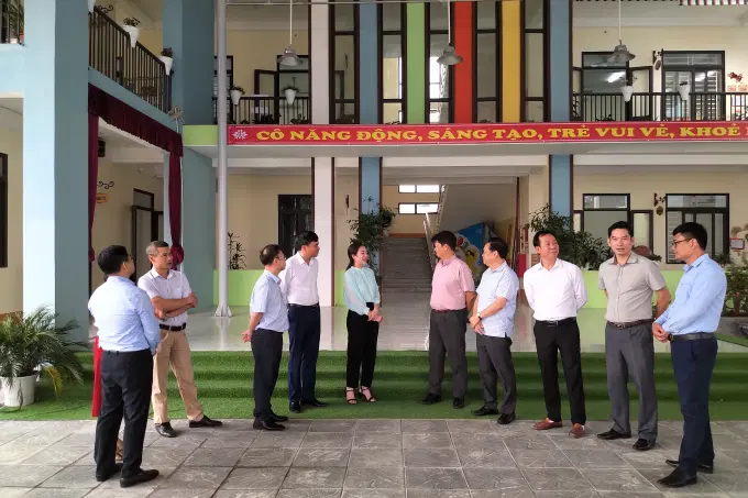 Đoàn đi kiểm tra thực tế tại Trường Mầm non xã Sơn Vi - huyện Lâm Thao