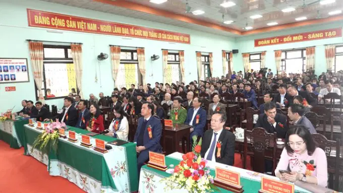 Đồng chí Nguyễn Thị Thanh Huyền – UVBTV, Trưởng Ban Dân Vận tỉnh uỷ trao Cờ thi đua của UBND tỉnh cho xã Hương Nộn