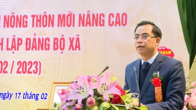 Đồng chí Chủ tịch UBND huyện Quách Hải Lý phát biểu tại buổi lễ