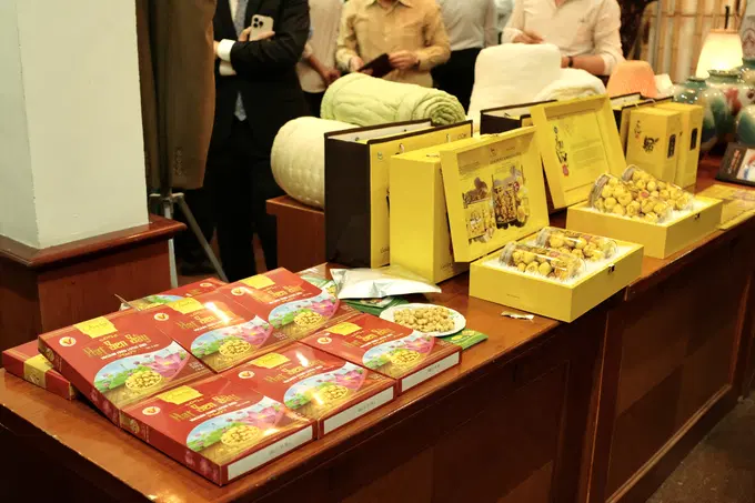 Gian hàng trưng bày sản phẩm OCOP 5 sao tại Hội nghị. Ảnh: Quỳnh Chi.
