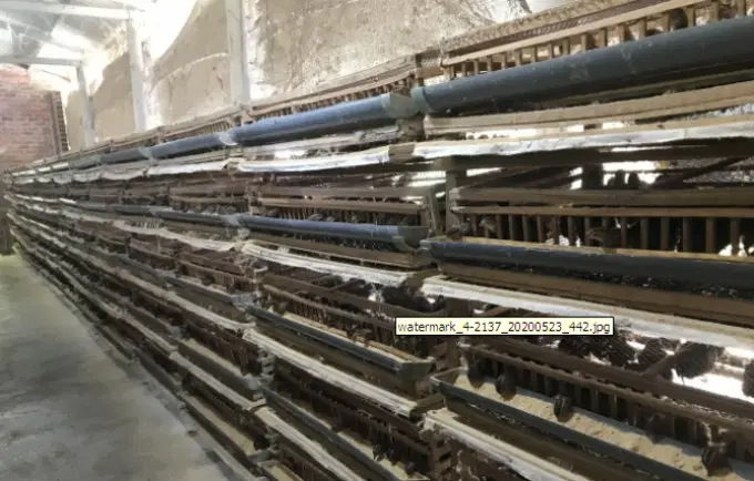 Mặt nền chuồng nuôi cút phải có độ nghiêng nhất định để trứng cút đẻ ra tự lăn ra máng hứng, nếu trứng nằm trong chuồng sẽ bị lũ cút dậm vỡ gây thất thoát. Ảnh: Vũ Đình Thung.