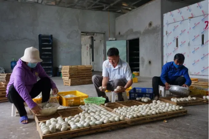 “Vịt nuôi thả trên ao hồ sinh sản phụ thuộc rất lớn vào thời tiết, nếu thời tiết quá nắng hay quá lạnh sẽ đẻ thất thường, giảm năng suất trứng. Khi áp dụng mô hình này, nhiệt độ, độ ẩm, ánh sáng được kiểm soát, vịt đẻ đều quanh năm và tăng thời gian khai thác trứng trên 12 tháng, tỷ lệ đậu phôi và ấp nở tốt”, ông Tranh cho biết.