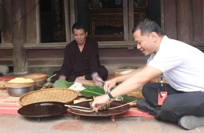 Tham quan nhà cổ, gói bánh chưng là một trong những dịch vụ của du lịch cộng đồng Hùng Lô.