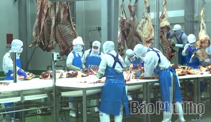 Dây chuyển giết mổ hiện đại tại Nhà máy Chế biến thịt bò Tam Đảo.