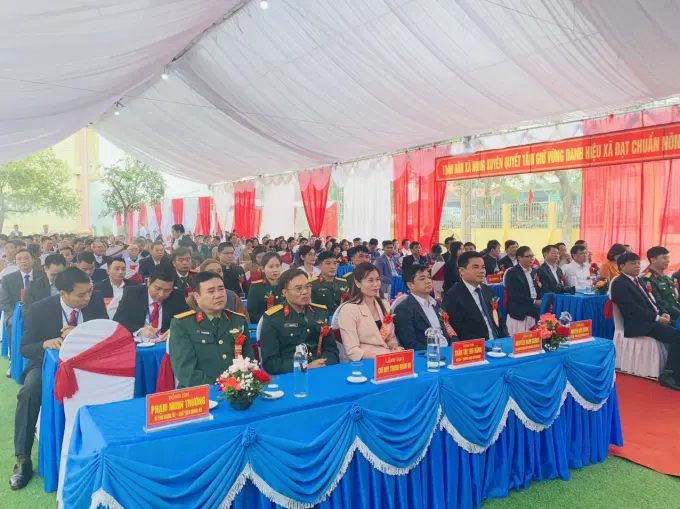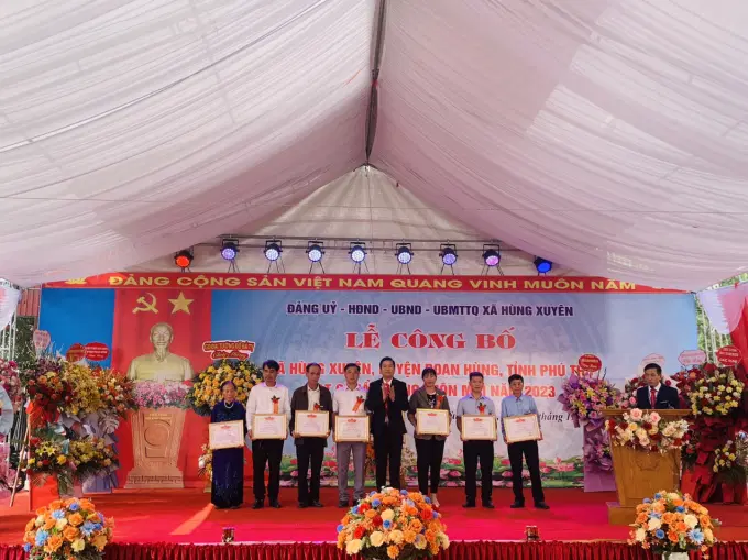 Thừa ủy quyền của Chủ tịch UBND tỉnh, đồng chí Bí thư Huyện ủy cùng các đồng chí lãnh đạo huyện đã trao tặng Bằng công nhận và tặng hoa chúc mừng xã Hùng Xuyên đạt chuẩn nông thôn mới.