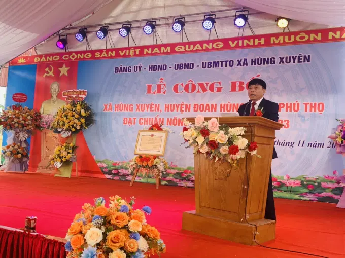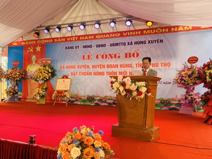 Phát biểu tại buổi lễ, đồng chí Lê Văn Phượng - Uỷ viên Ban Chấp hành Đảng bộ tỉnh, Bí thư Huyện uỷ, Chủ tịch HĐND huyện đã nhiệt liệt biểu dương, chúc mừng thành tích mà Đảng bộ, Chính quyền và Nhân dân xã Hùng Xuyên đã nỗ lực phấn đấu và đạt được trong phong trào xây dựng NTM. Đồng chí đề nghị trong thời gian tới xã Hùng Xuyên cần tiếp tục quán triệt và triển khai tốt các chủ trương, đường lối của Đảng, chính sách pháp luật của Nhà nước về xây dựng NTM với phương châm “Xây dựng NTM là quá trình liên tục, lâu dài, có điểm khởi đầu nhưng không có điểm kết thúc”; Đẩy mạnh công tác tuyên truyền, nâng cao nhận thức cho cán bộ và nhân dân, nâng cao chất lượng các phong trào thi đua xây dựng NTM, phong trào “Cả nước chung sức xây dựng nông thôn mới” giai đoạn 2021-2025 do Thủ tướng Chính phủ phát động. Kiện toàn bộ máy tổ chức của Ban chỉ đạo xây dựng Nông thôn mới xã, nâng cao năng lực, trình độ của đội ngũ cán bộ làm công tác xây dựng NTM. Phát huy tiềm năng, thế mạnh của địa phương, huy động, lồng ghép các nguồn lực vào xây dựng NTM. Đồng thời chú trọng phát triển sản xuất, đẩy mạnh tái cơ cấu sản xuất nông nghiệp gắn với phát triển dịch vụ, ngành nghề tiểu thủ công nghiệp; đẩy mạnh hợp tác liên kết vùng, ứng dụng tiến bộ khoa học công nghệ, gắn sản xuất với thị trường tiêu thụ, nâng cao năng suất, chất lượng, hiệu quả và giá trị tăng thêm trên sản phẩm nhằm mục tiêu tăng thu nhập nâng cao đời sống vật chất tinh thần cho nhân dân.