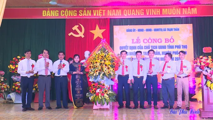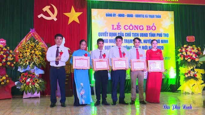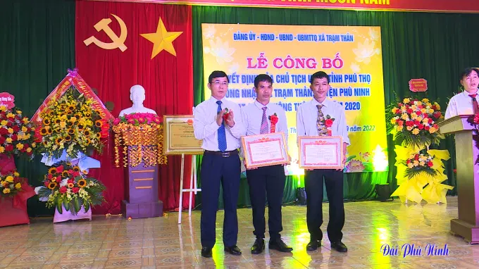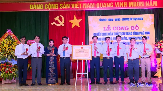 Tại buổi lễ, thừa ủy quyền của Chủ tịch UBND tỉnh Phú Thọ, đồng chí Nguyễn Thị Tố Uyên, Tỉnh ủy viên, Bí Thư Huyện ủy; đồng chí Nguyễn Hữu Nhật, Phó Bí thư Huyện ủy, Chủ tịch UBND huyện, Trưởng ban Chỉ đạo xây dựng nông thôn mới của huyện; Đồng chí Nguyễn Quang Vinh – Phó Bí thư TT Huyện ủy đã tặng hoa và trao bằng công nhận "Xã đạt chuẩn Nông thôn mới năm 2020" cho Đảng bộ, chính quyền và nhân dân xã Trạm Thản.