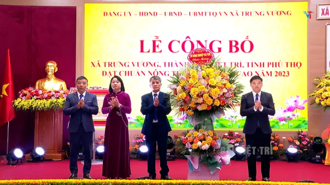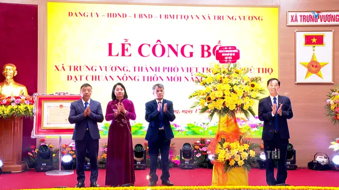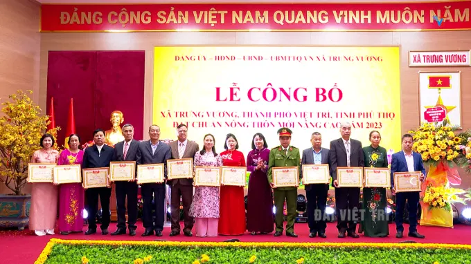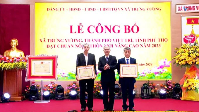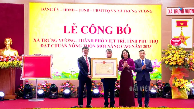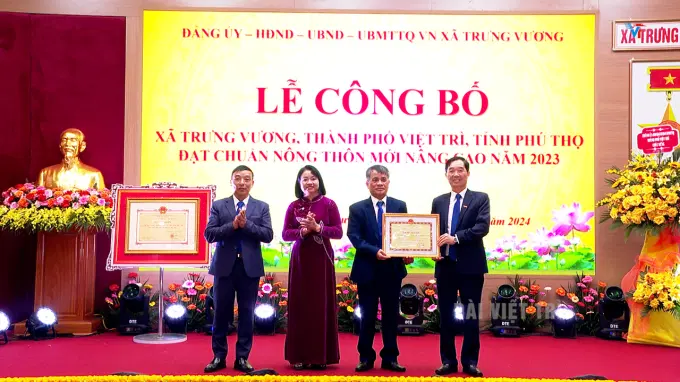 Tại buổi lễ, thừa uỷ quyền, đồng chí Nguyễn Hữu Nhu – UV BTV Thành ủy, Phó Chủ tịch UBND thành phố đã trao bằng công nhận xã Trưng Vương đạt xã chuẩn nông thôn mới nâng cao năm 2023.